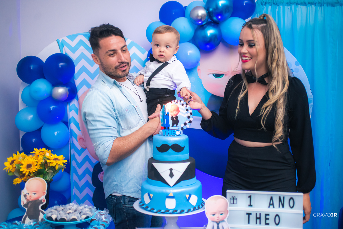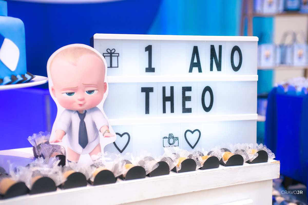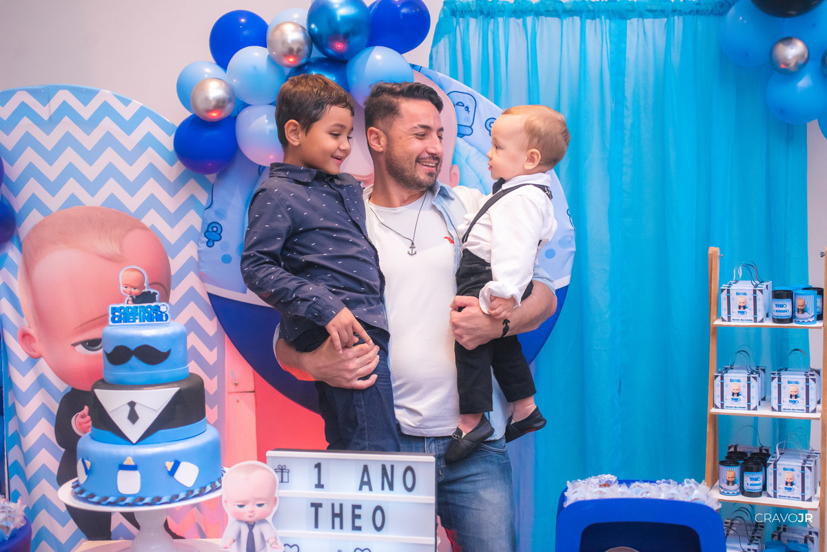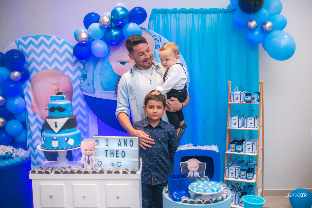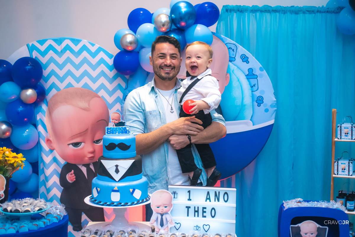 O primeiro aniversário de uma criança sempre fica marcado na memória de uma família. A festa do Théo foi realizada no Festeja, em Itapeva-SP, e trouxe para a decoração o tema "O Poderoso Chefinho". O pequeno aniversariante, aliás, estava muito gracioso, usando um figurino idêntico ao do filme.