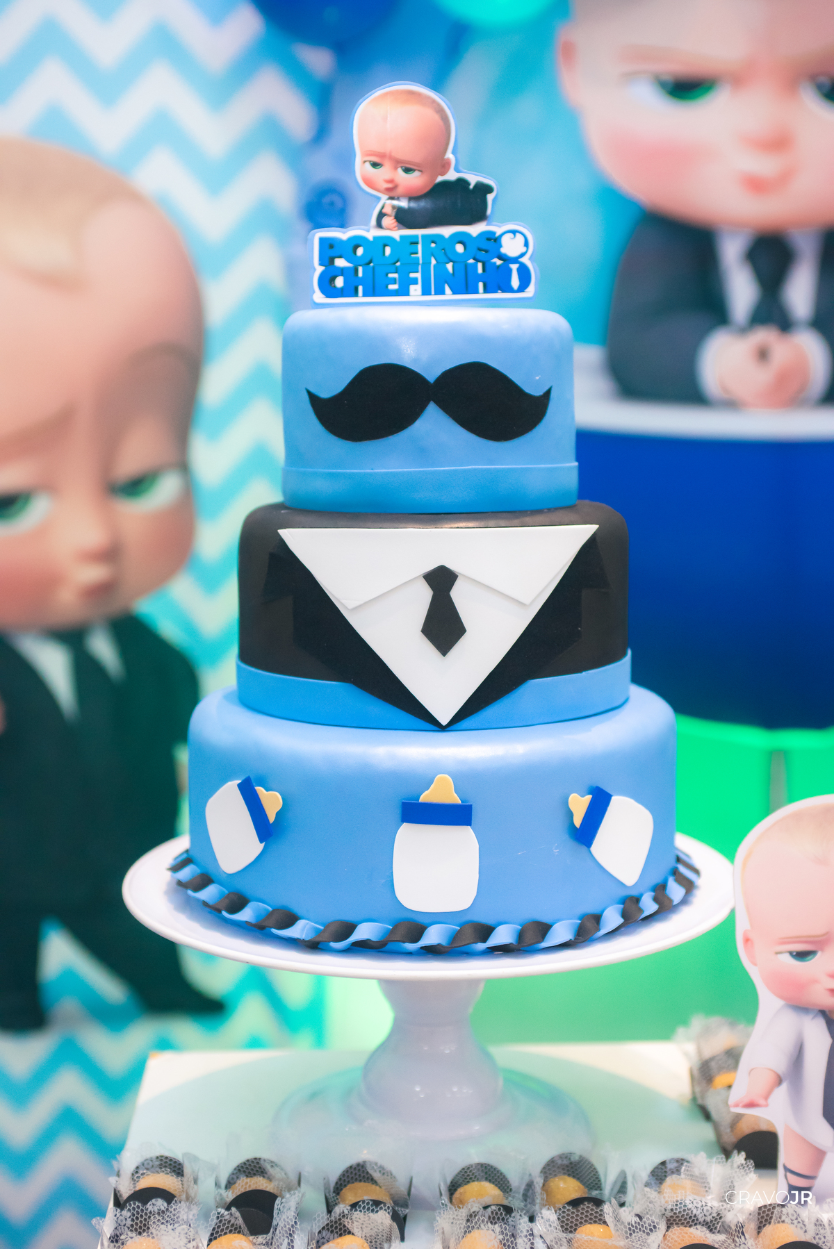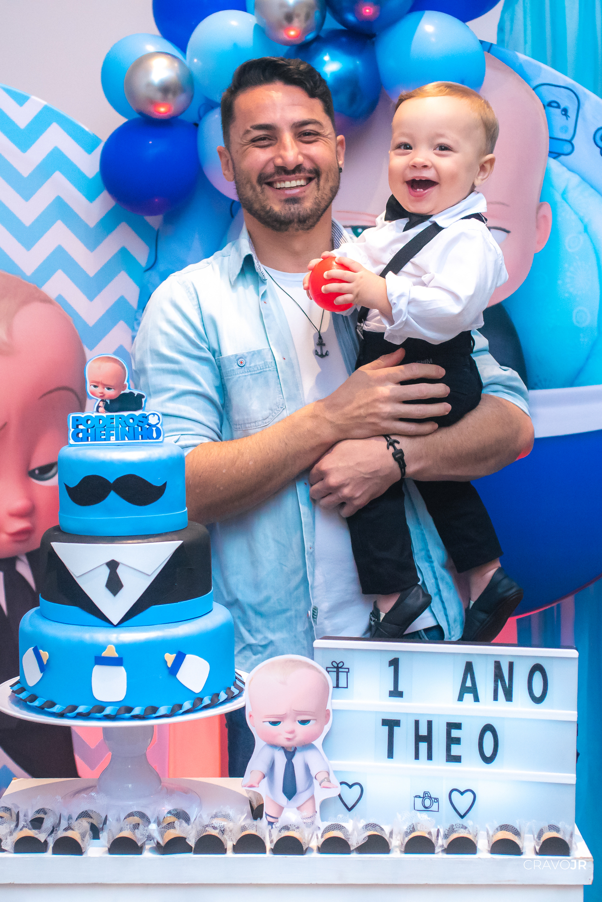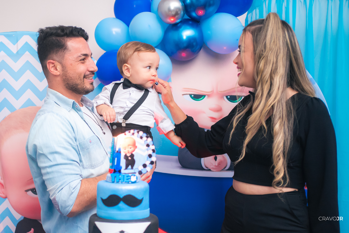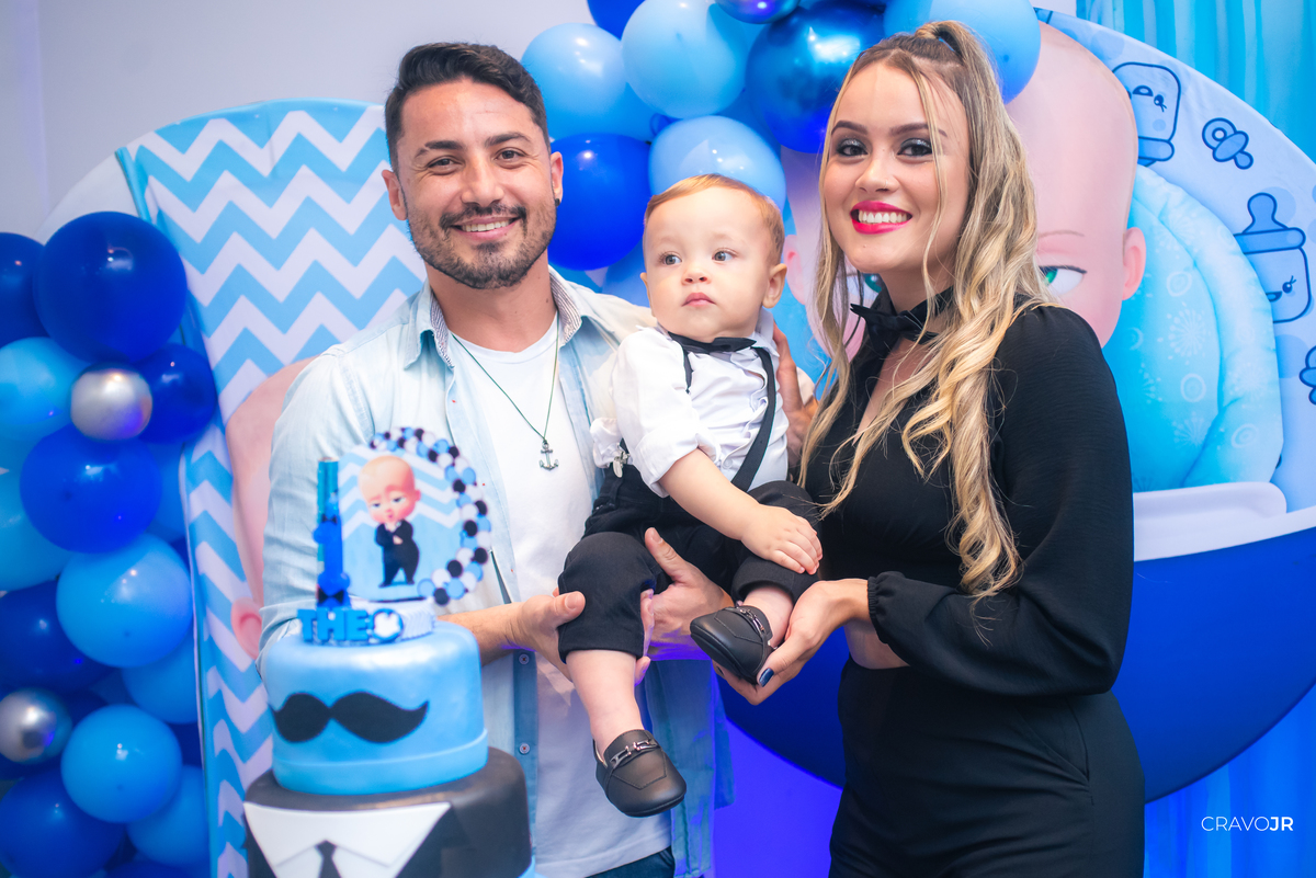 O primeiro aniversário de uma criança sempre fica marcado na memória de uma família. A festa do Théo foi realizada no Festeja, em Itapeva-SP, e trouxe para a decoração o tema "O Poderoso Chefinho". O pequeno aniversariante, aliás, estava muito gracioso, usando um figurino idêntico ao do filme.