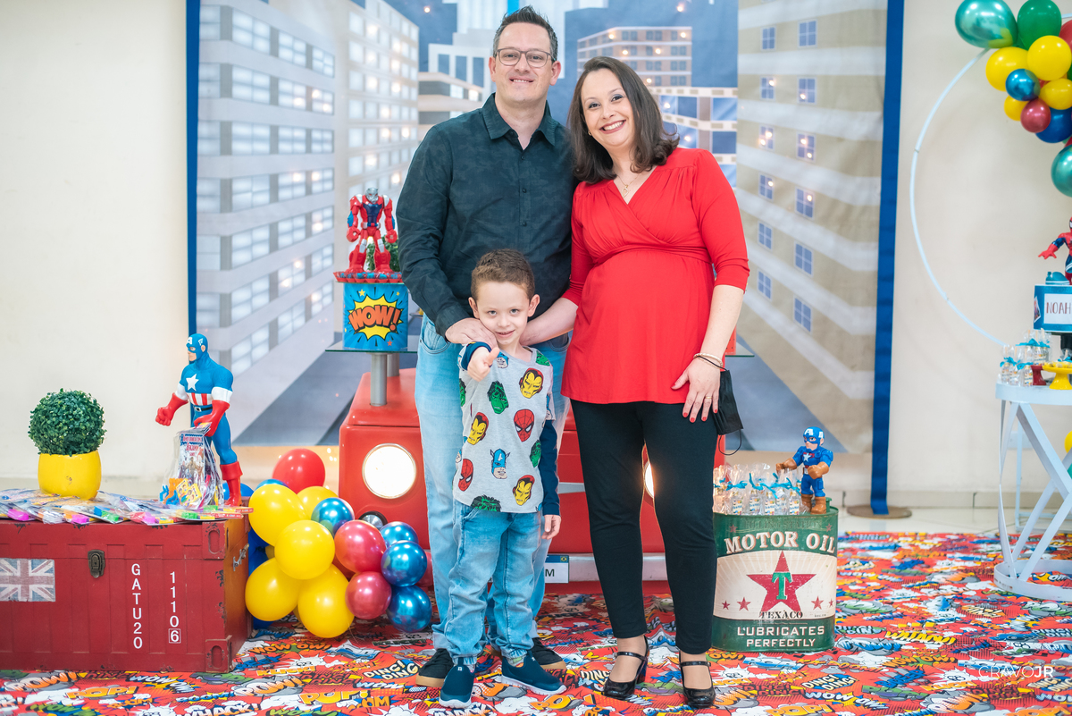 "Com grandes poderes, vem grandes responsabilidades". O tema escolhido para a festa foi "Homem-Aranha" e Benjamim mostrou ter grande espírito aventureiro. Nosso pequeno herói curtiu vários brinquedos na companhia de seus amigos.