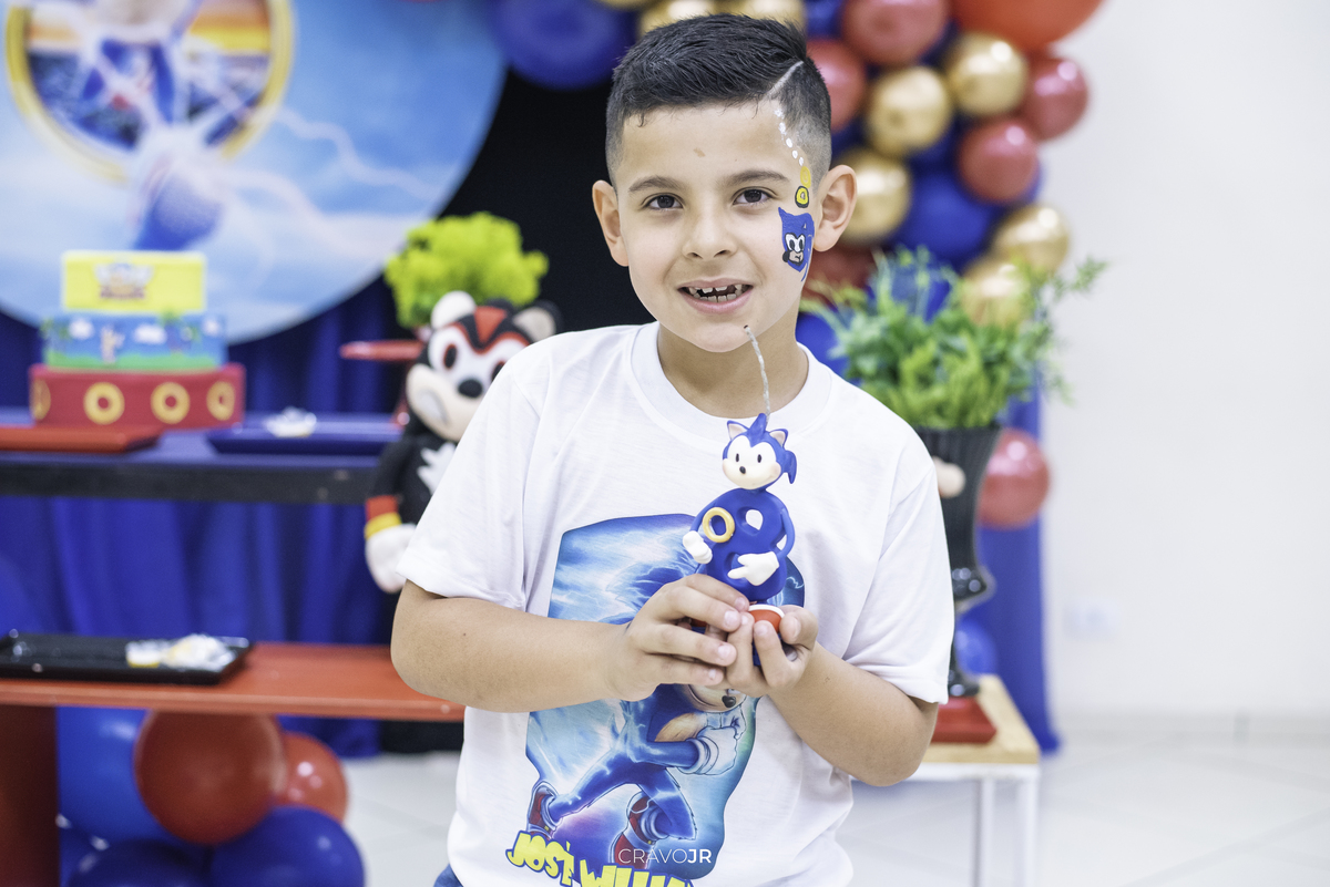 Se pudéssemos definir o aniversário do José numa palavra, essa palavra seria "família". O tema da decoração era sobre o personagem "Sonic". O aniversariante se divertiu durante a festa ao lado de seus familiares e amigos. Sem dúvidas, a festa dele alegrou a todos os convidados.