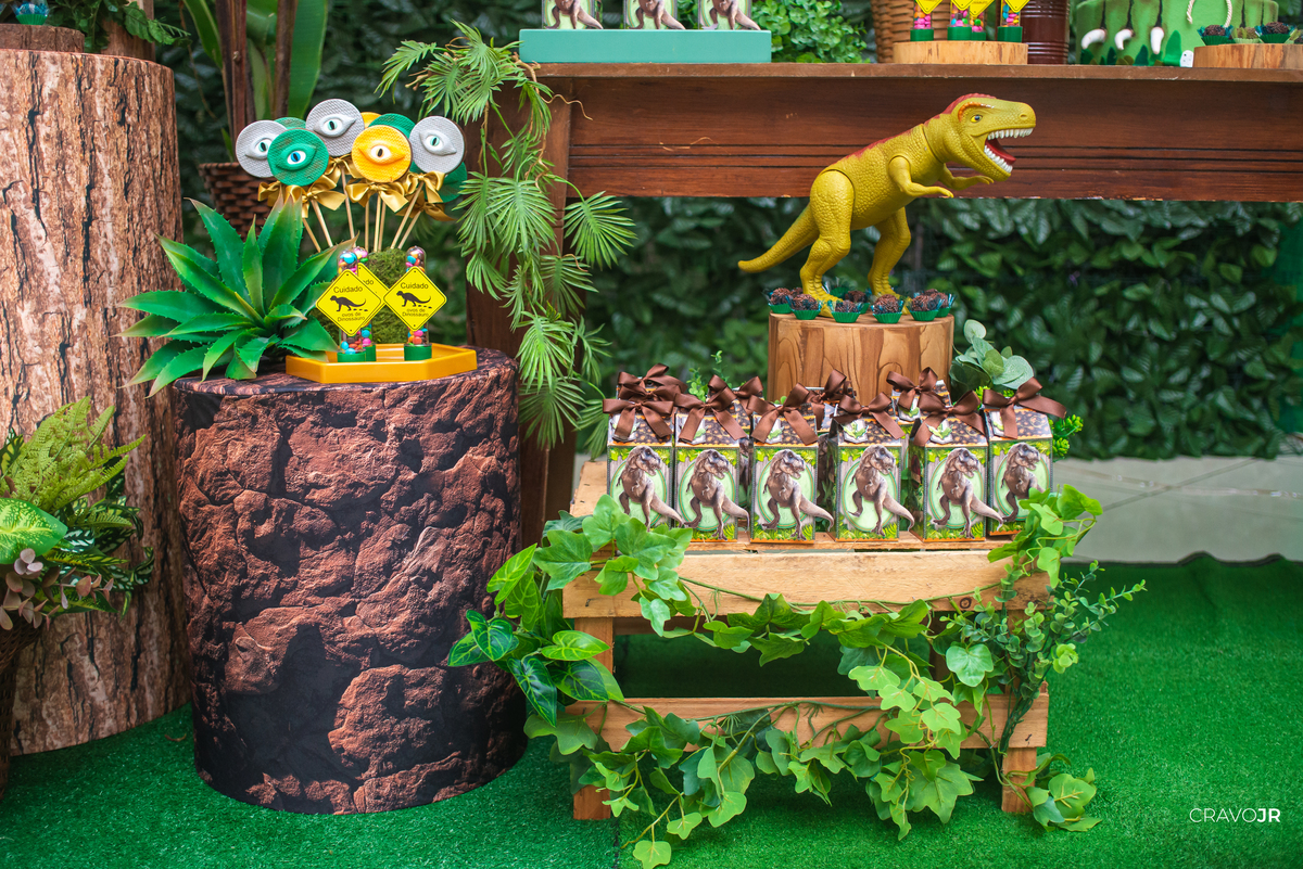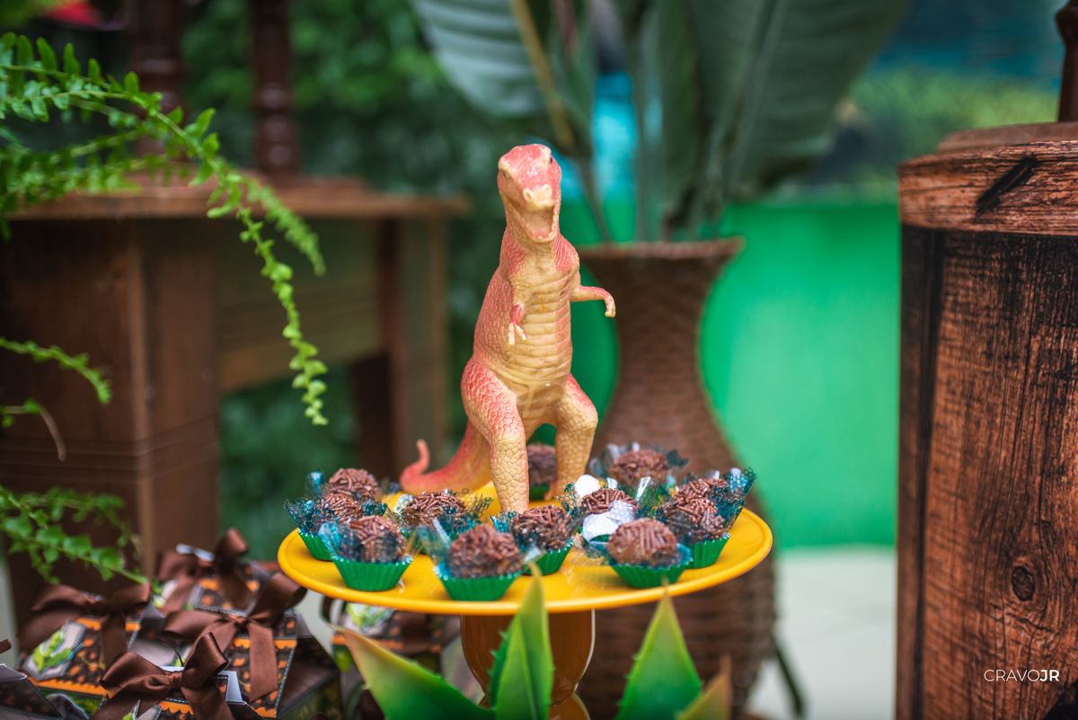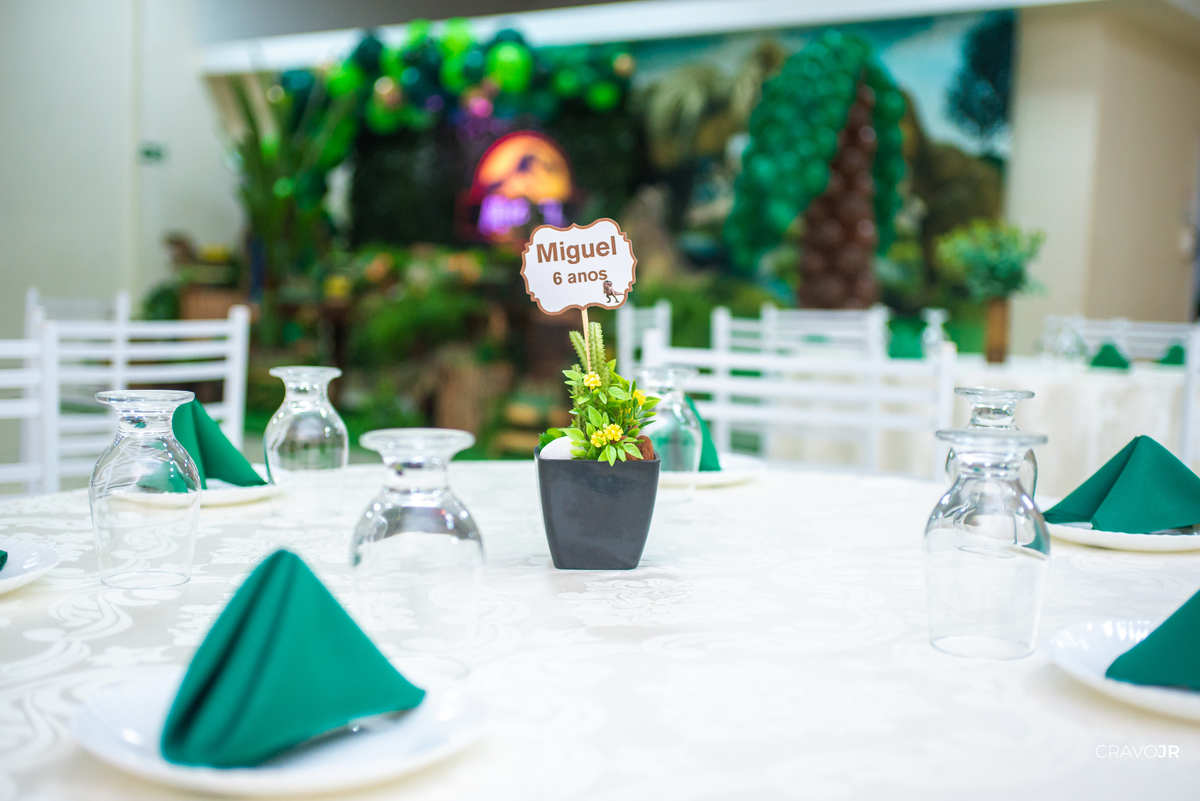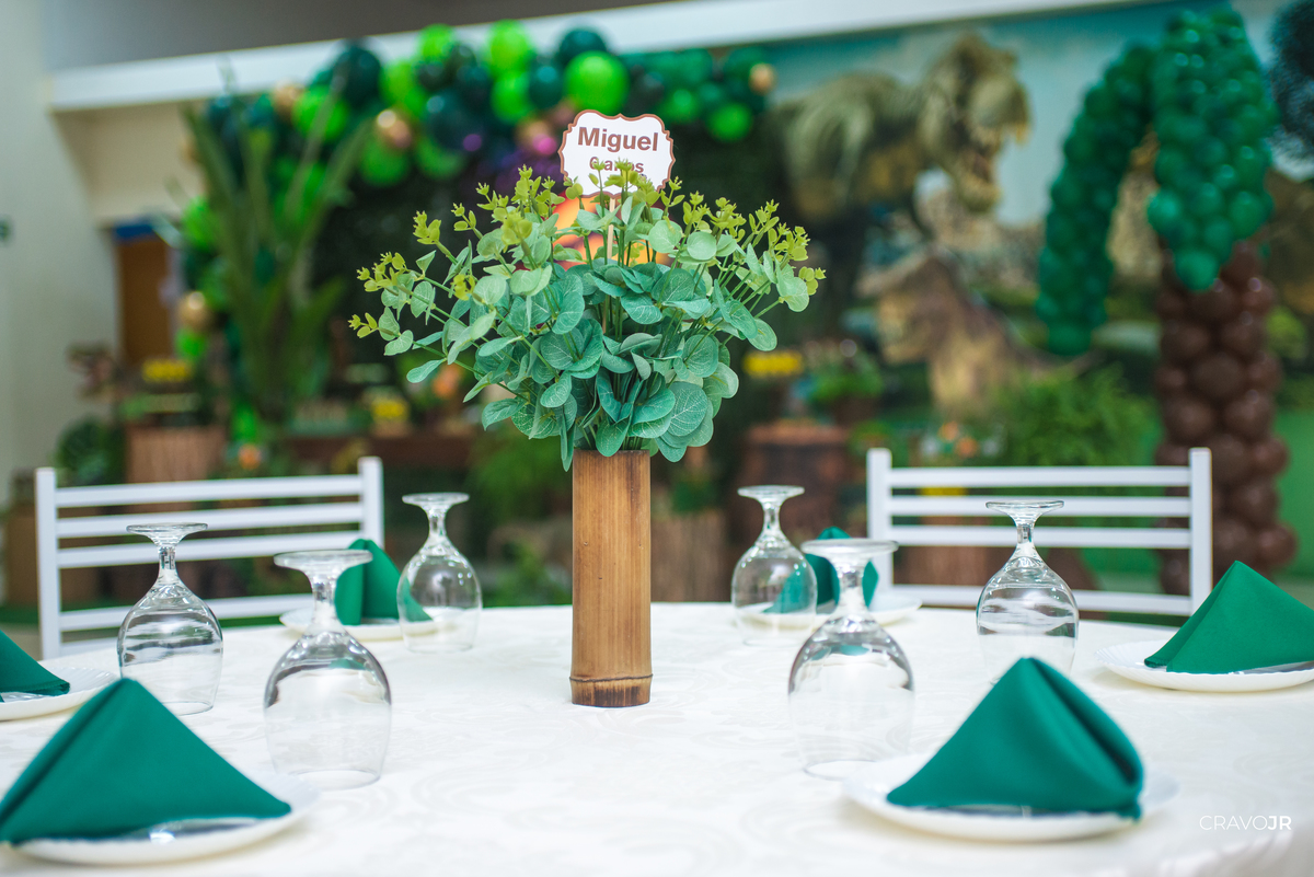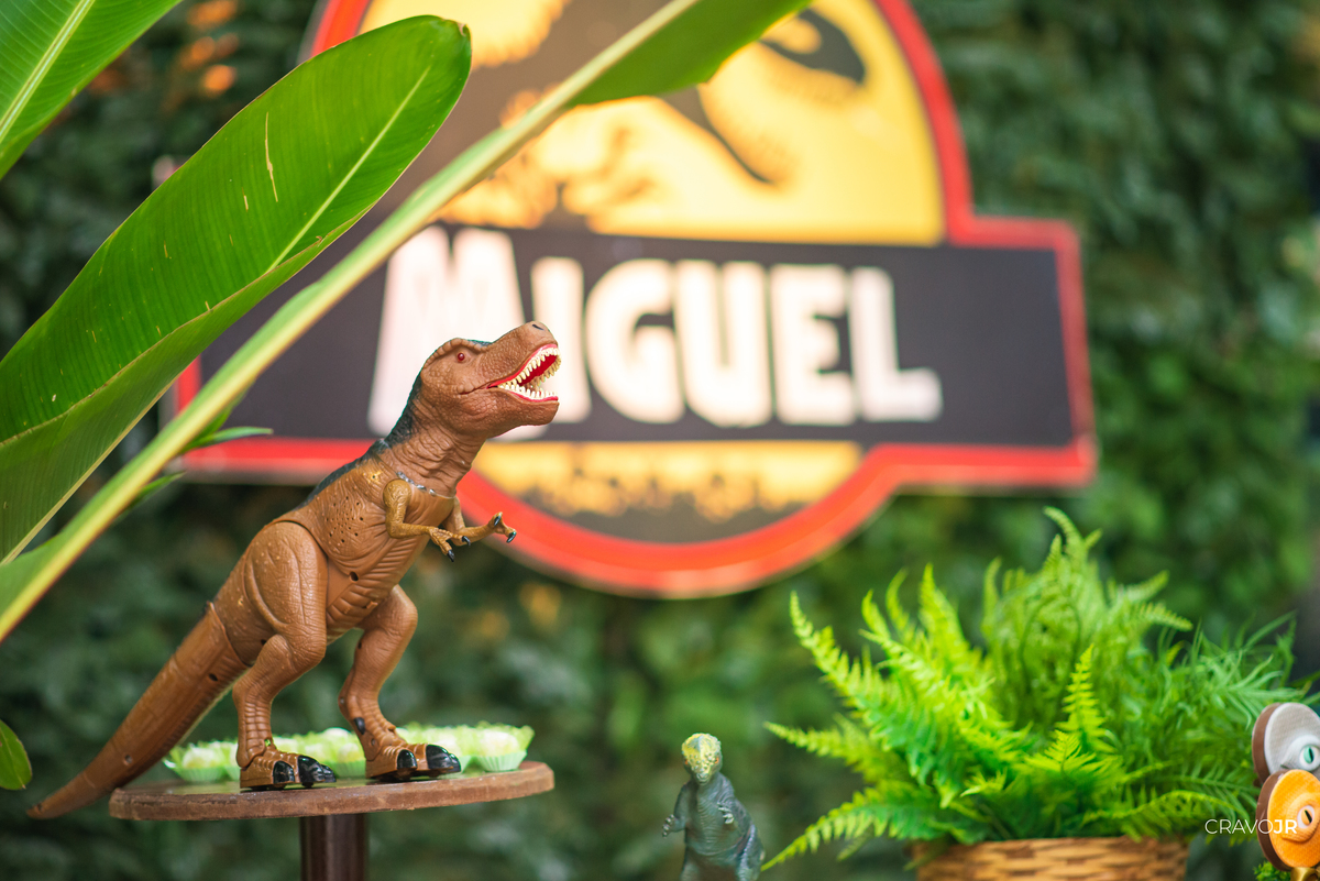 A festa de aniversário do MIguel foi demais! Ao lado dos pais, Carla e Fernando, e da irmã Helena, ele se divertiu pelos brinquedos do Salão de Festas Algodão Doce. O tema da decoração de sua festa era sobre "Jurassic Park".