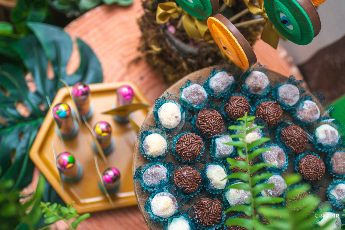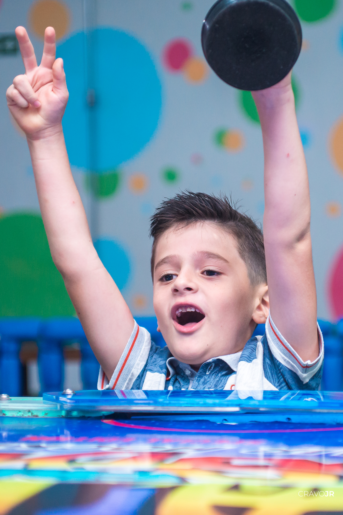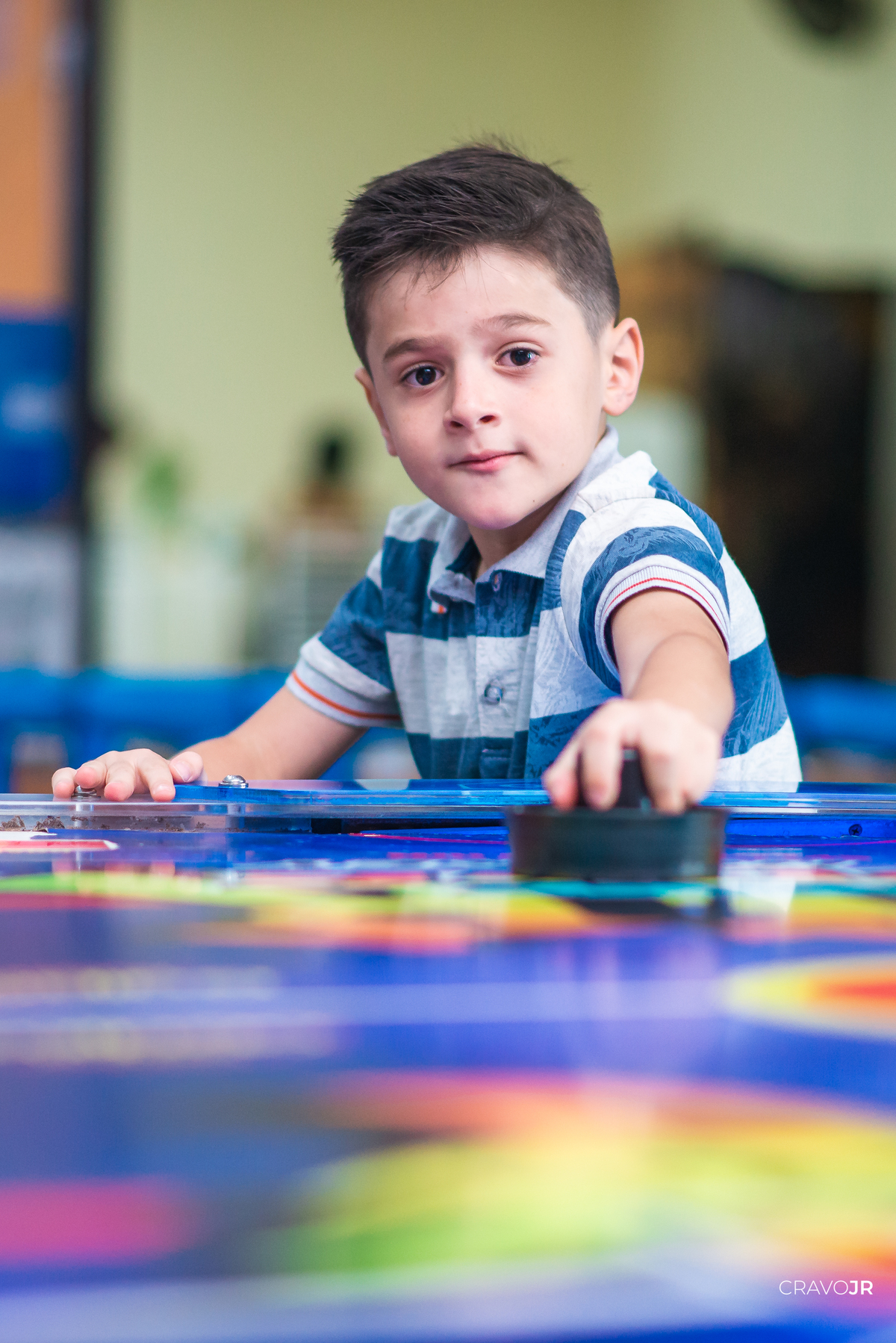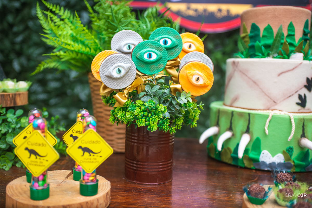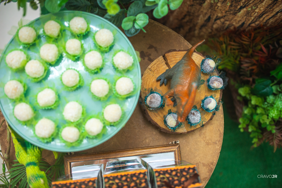 A festa de aniversário do MIguel foi demais! Ao lado dos pais, Carla e Fernando, e da irmã Helena, ele se divertiu pelos brinquedos do Salão de Festas Algodão Doce. O tema da decoração de sua festa era sobre "Jurassic Park".