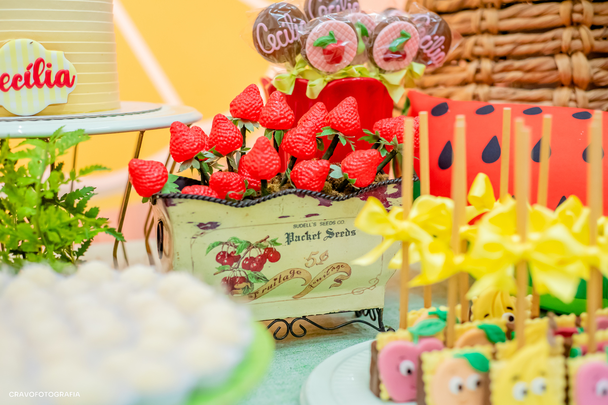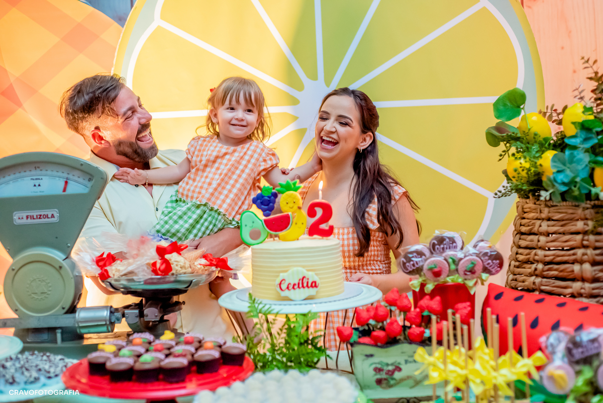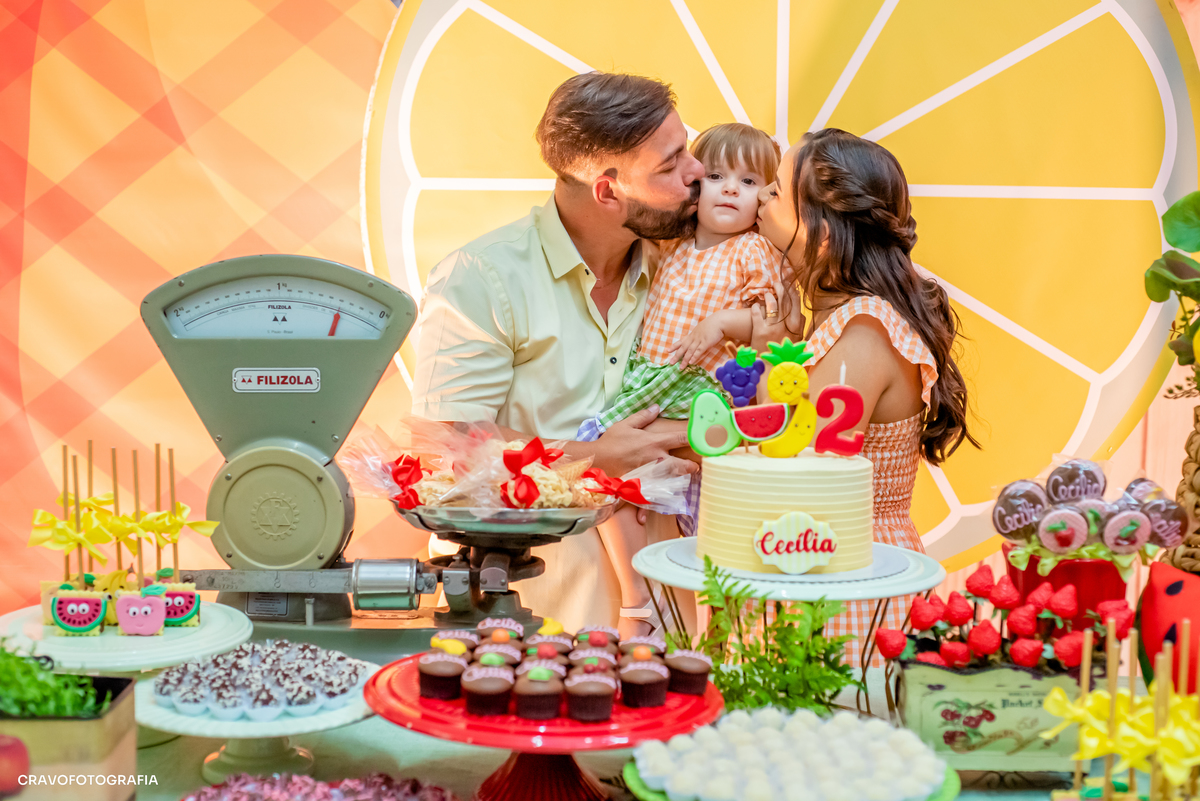 O aniversário de 2 anos da pequena Cecília reuniu todos os ingredientes de um dia feliz: muito carinho, boas companhias e alegria contagiante. A festa foi realizada no Fer Fervendo Buffet Infantil, e o tema da decoração era sobre "Frutinhas", o que deixou o salão ainda mais colorido e encantador.