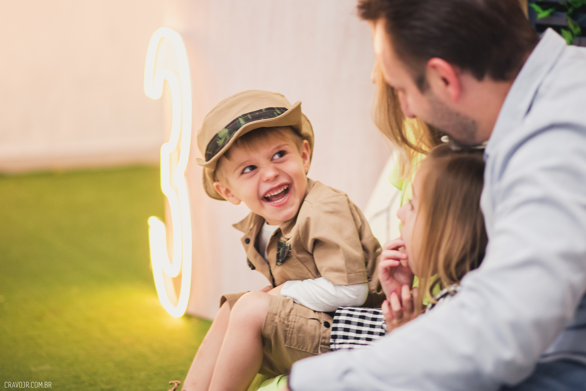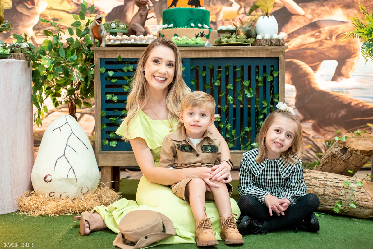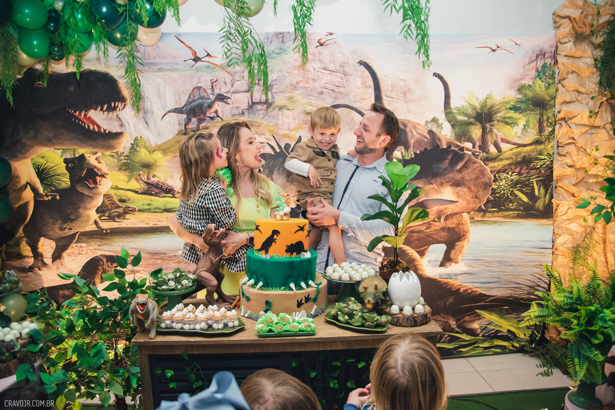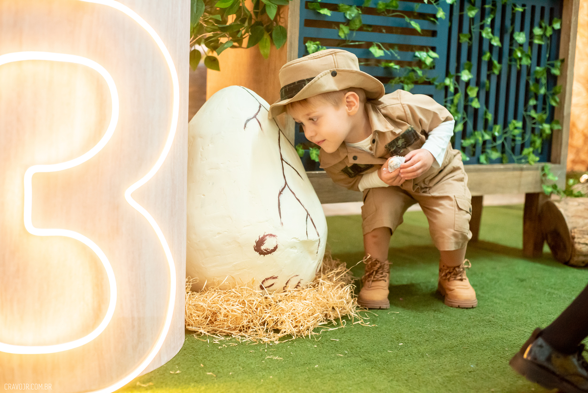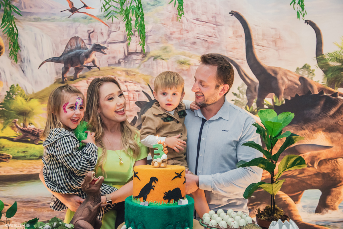 A vida é uma aventura! Heitor é o nosso pequeno explorador, que completou 3 aninhos de idade. Ao lado de seus pais, ele brincou e se divertiu entre os brinquedos e a decoração da festa, que trazia o tema "Dinossauros".