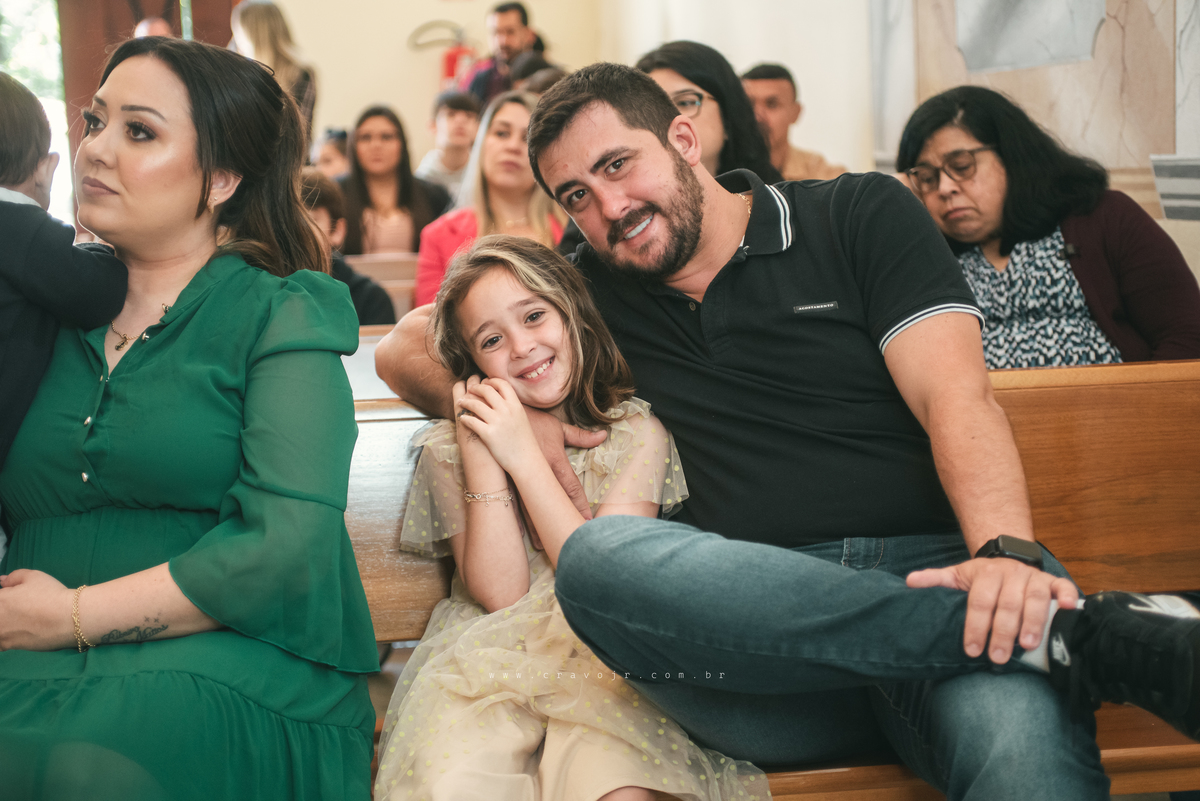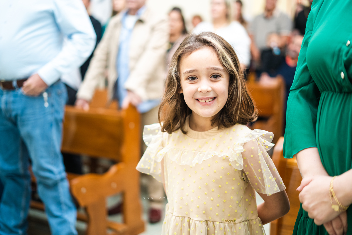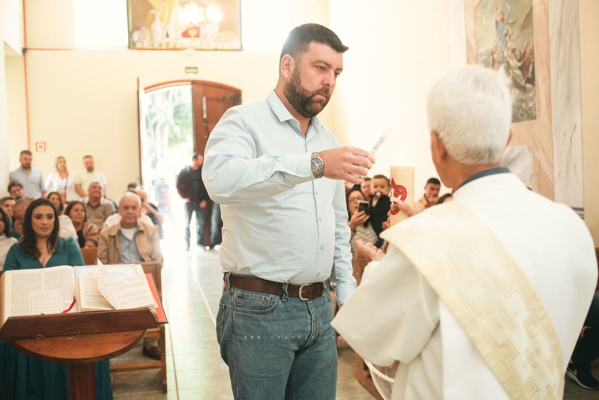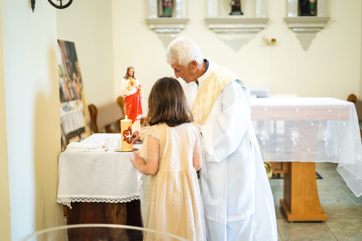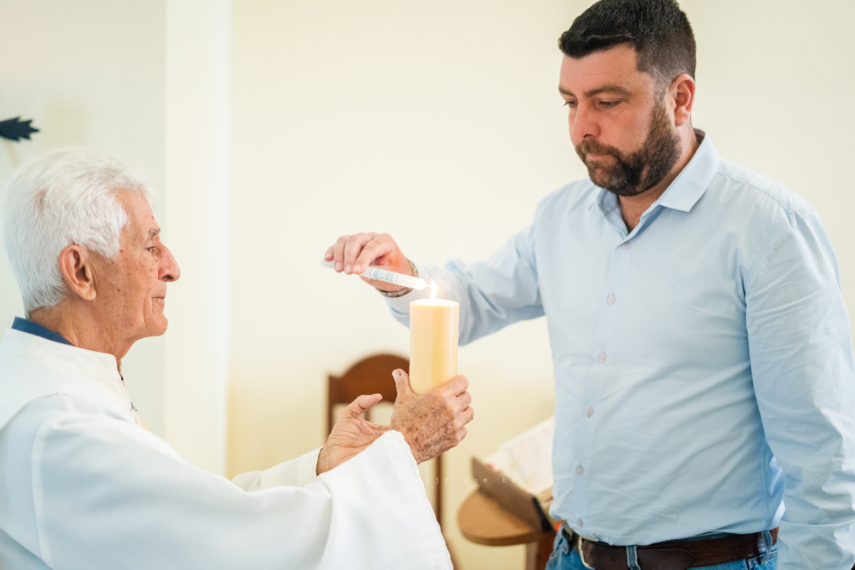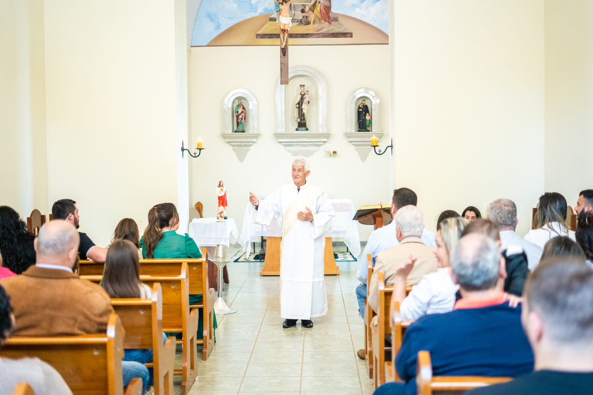 Isadora, filha mais velha de Gabi e Diego, auxiliou o diácono tal como uma excelente coroinha. Foi um momento familiar e comunitário que todos se lembrarão. Após o batizado, os convidados participaram da recepção na Chácara da Vovó Lurdes.