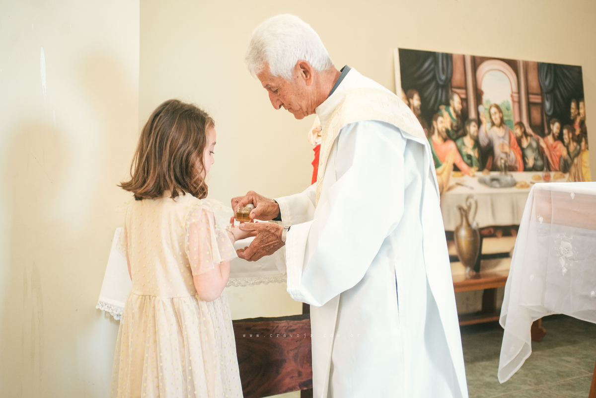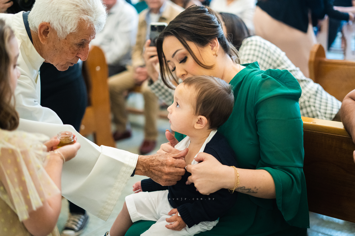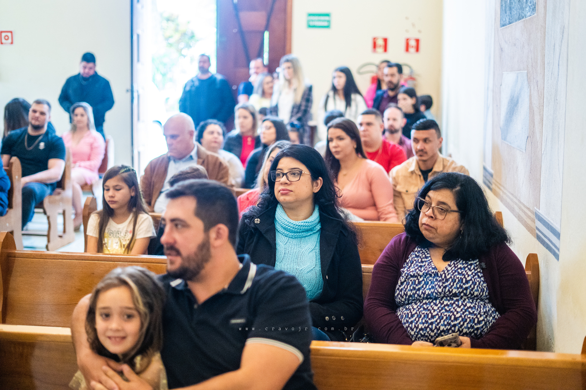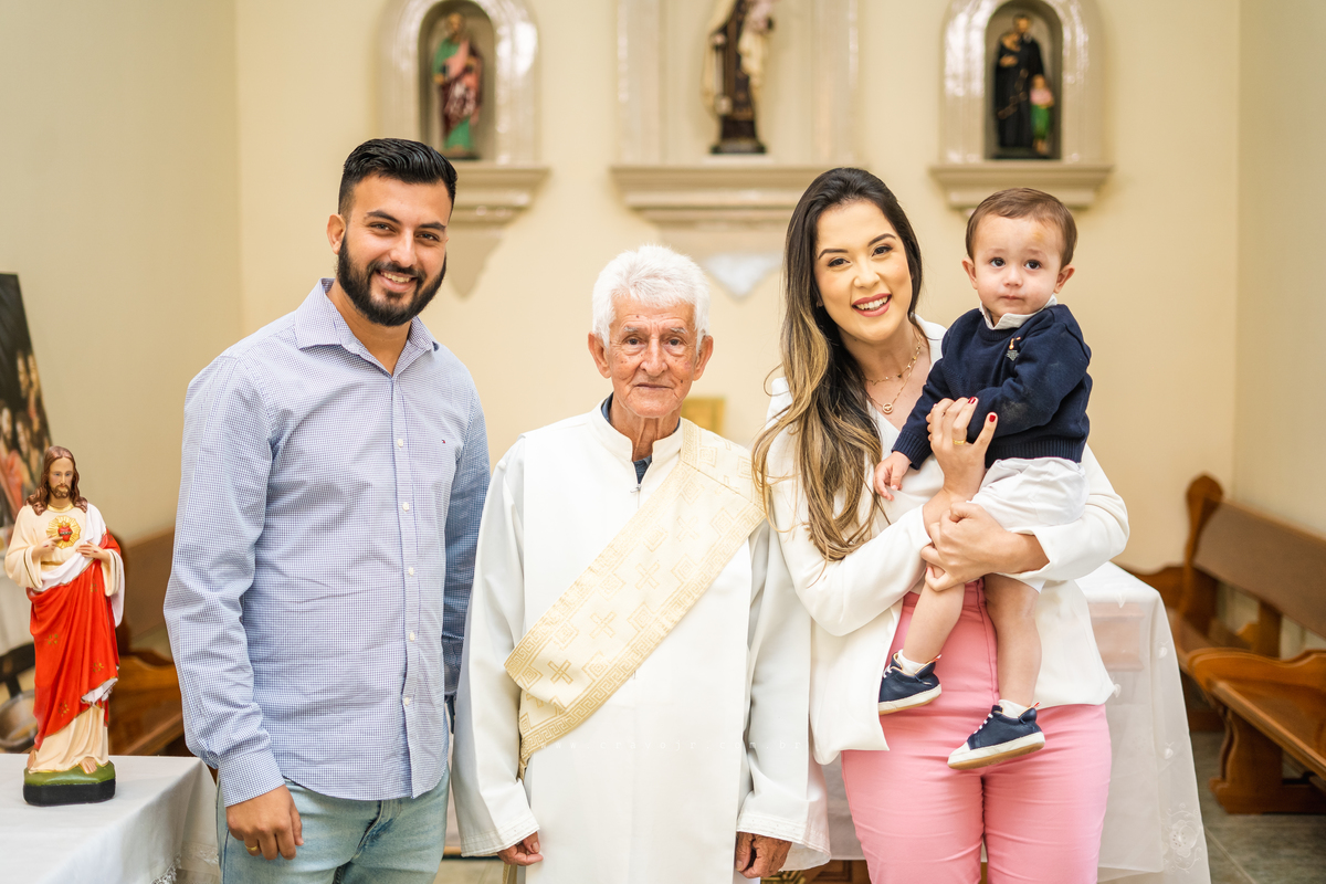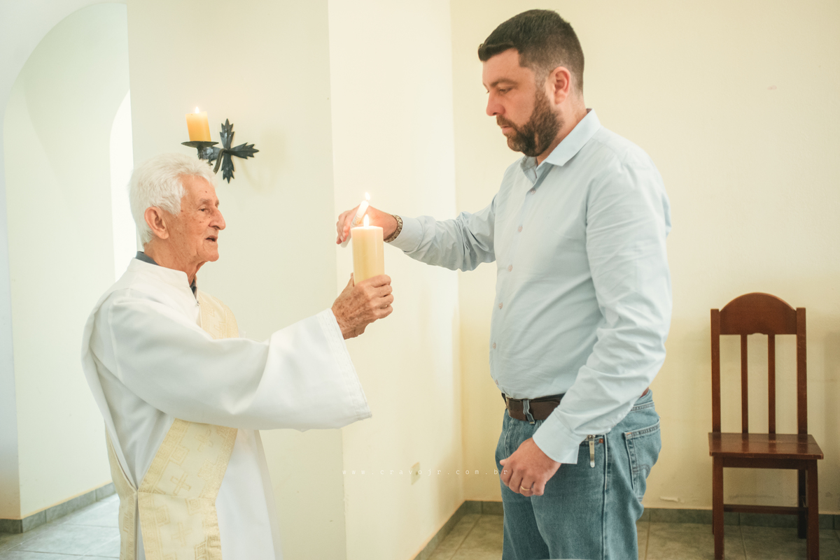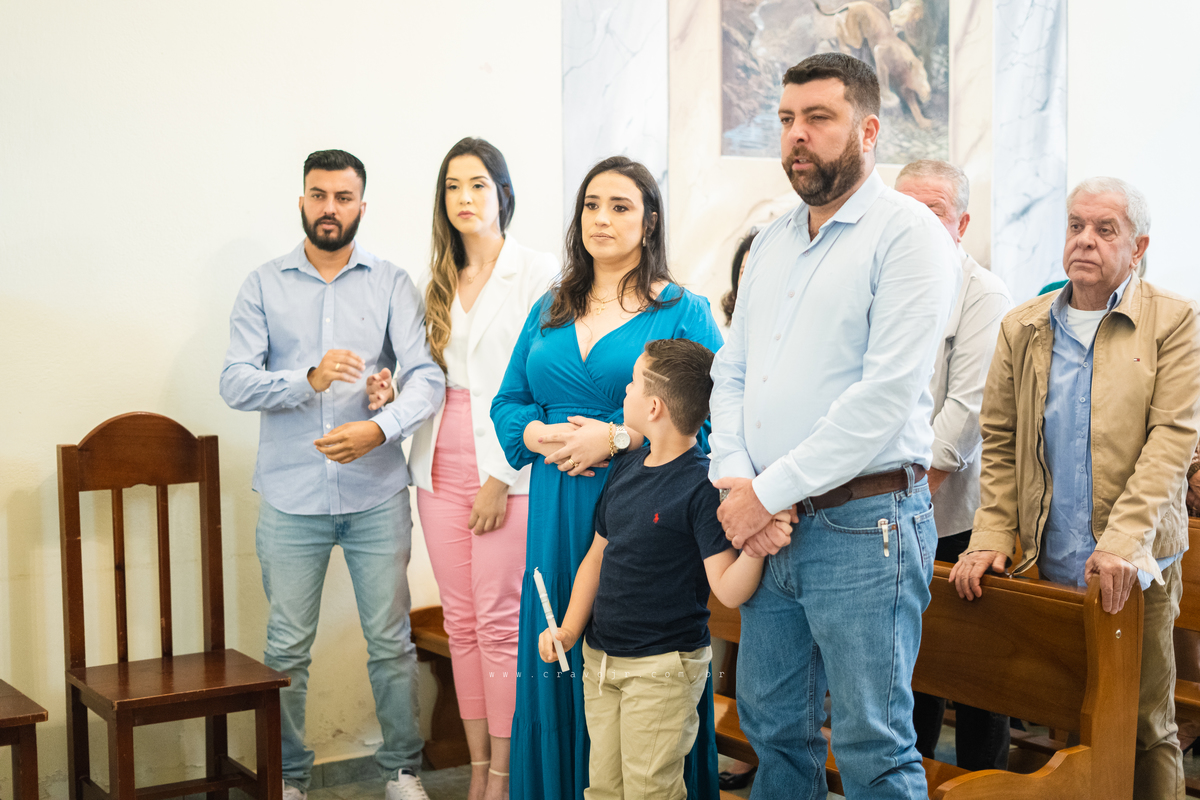 Isadora, filha mais velha de Gabi e Diego, auxiliou o diácono tal como uma excelente coroinha. Foi um momento familiar e comunitário que todos se lembrarão. Após o batizado, os convidados participaram da recepção na Chácara da Vovó Lurdes.