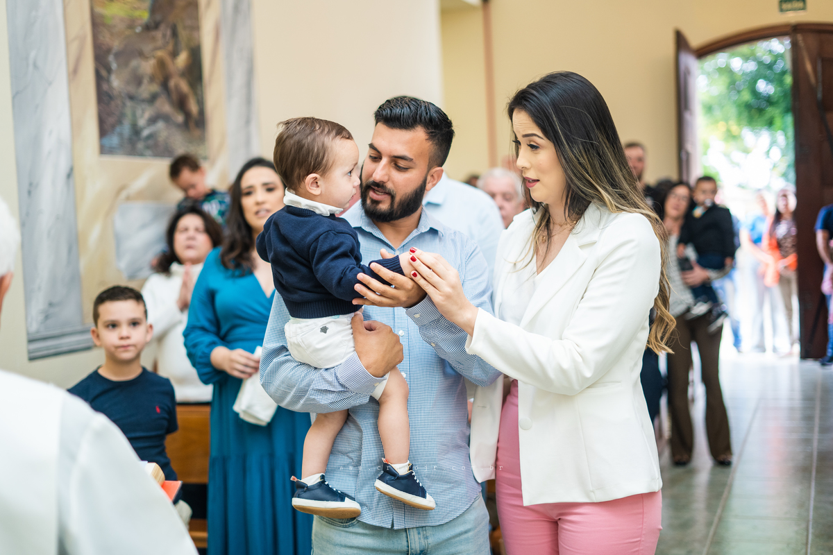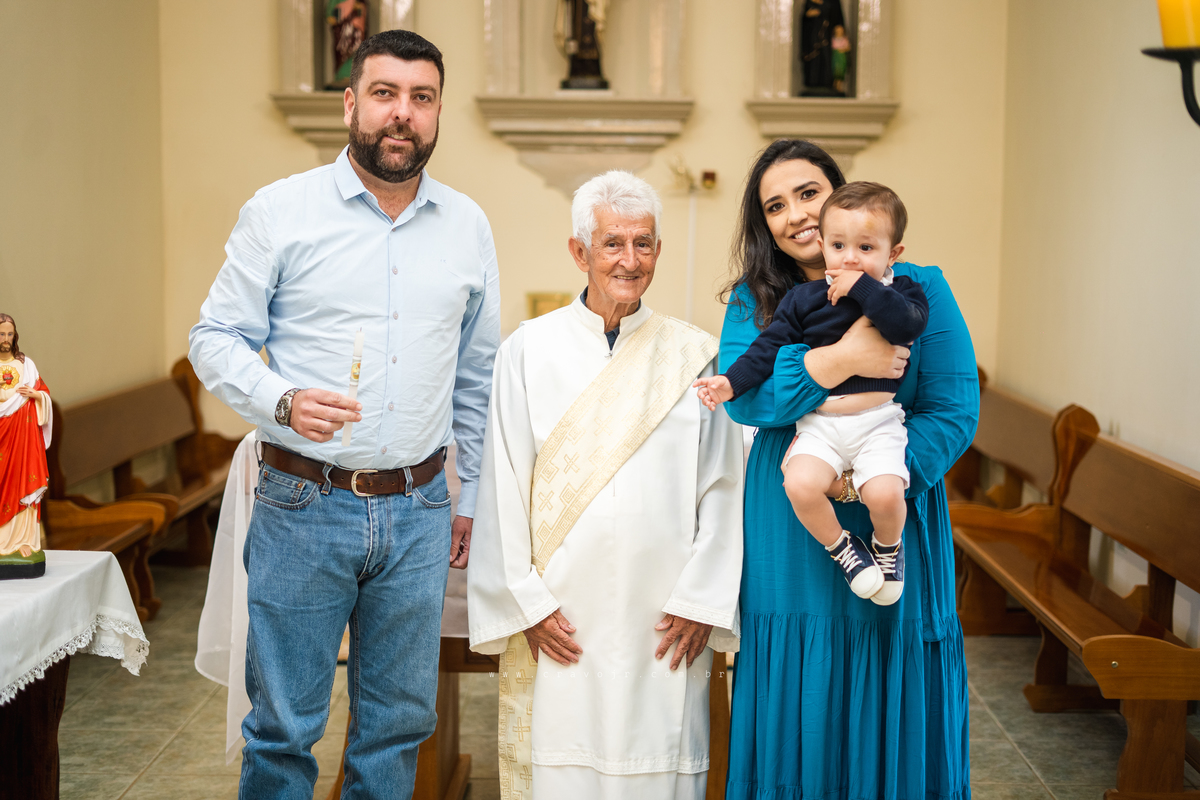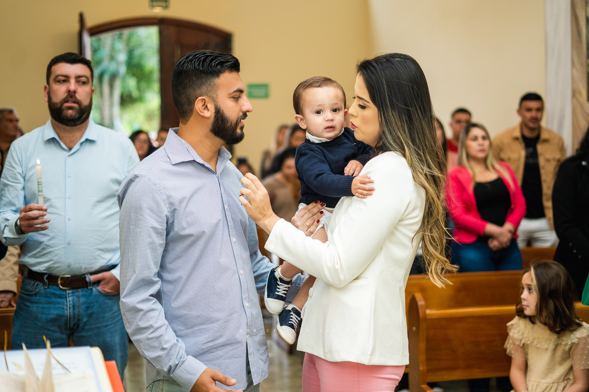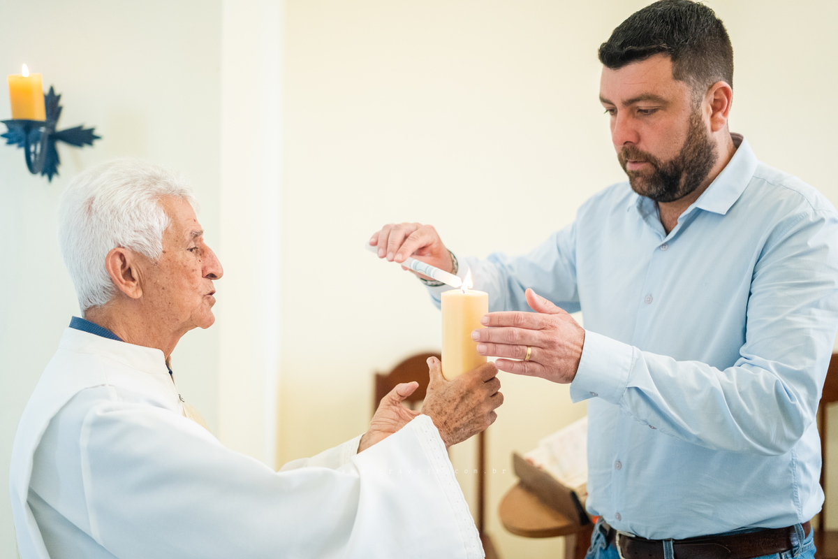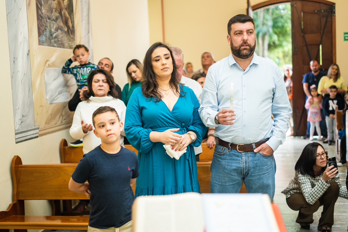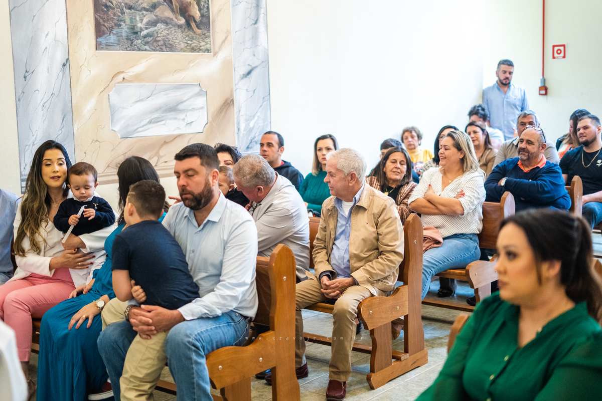 Isadora, filha mais velha de Gabi e Diego, auxiliou o diácono tal como uma excelente coroinha. Foi um momento familiar e comunitário que todos se lembrarão. Após o batizado, os convidados participaram da recepção na Chácara da Vovó Lurdes.