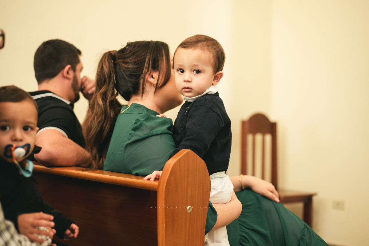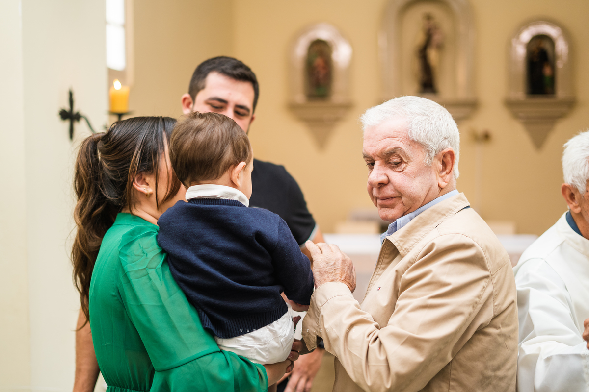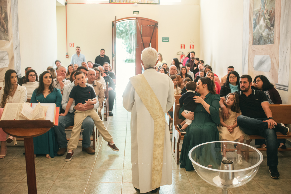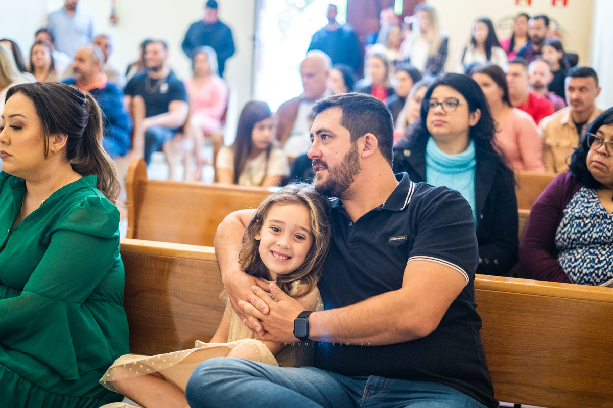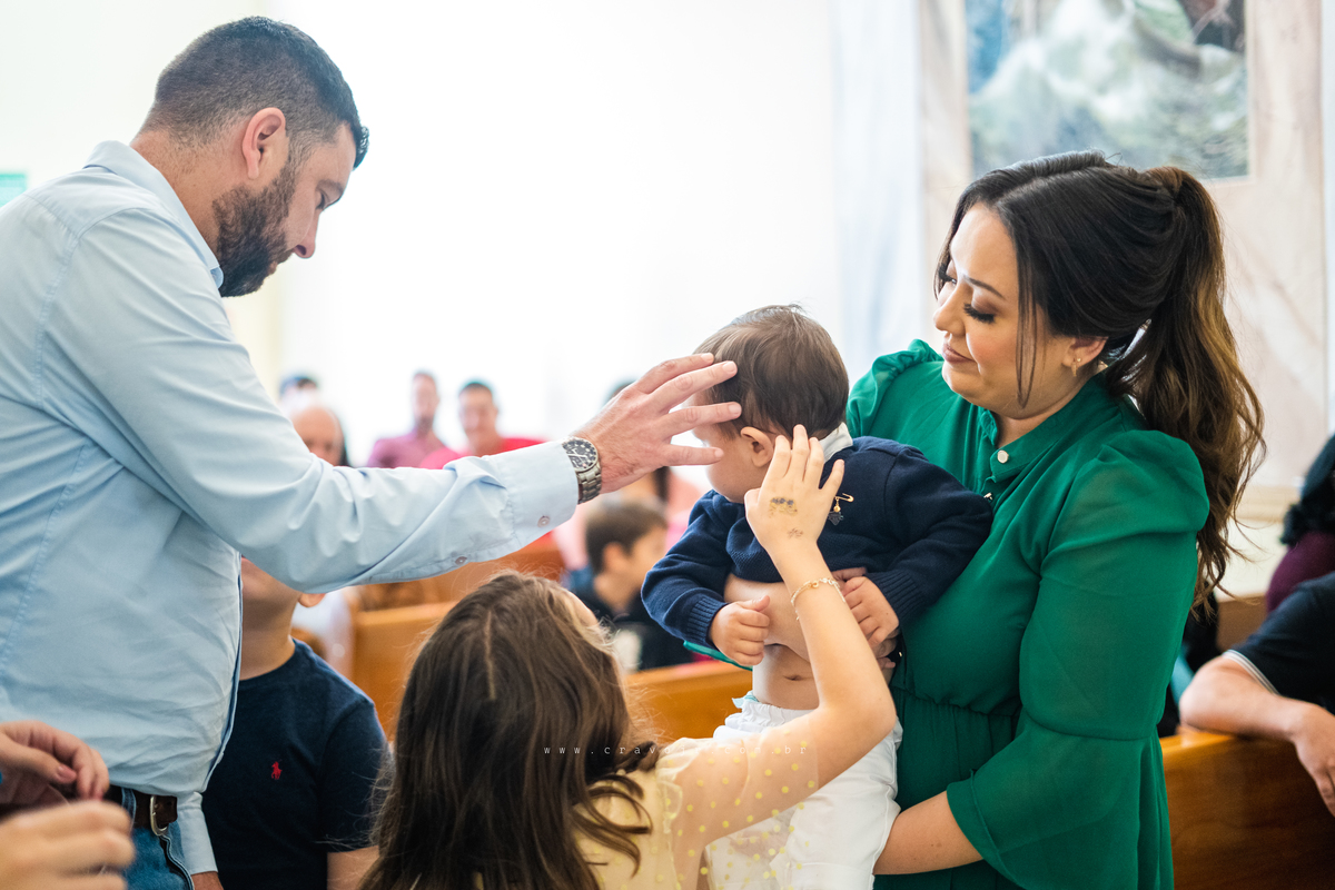 Isadora, filha mais velha de Gabi e Diego, auxiliou o diácono tal como uma excelente coroinha. Foi um momento familiar e comunitário que todos se lembrarão. Após o batizado, os convidados participaram da recepção na Chácara da Vovó Lurdes.