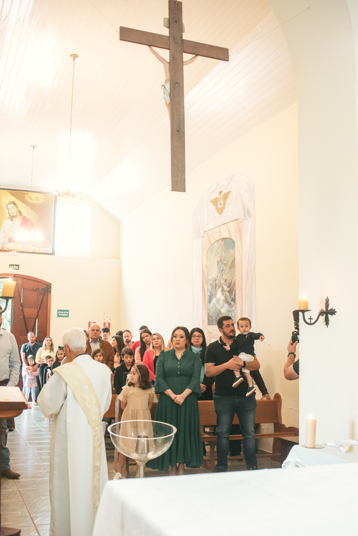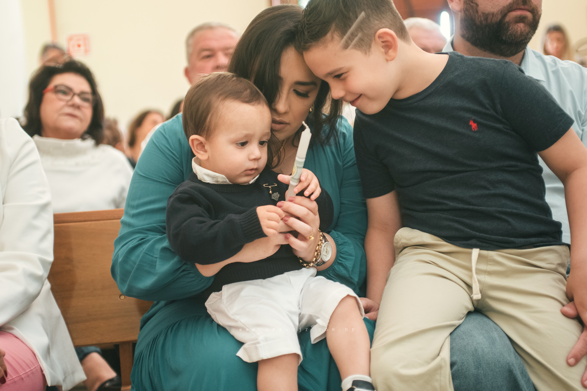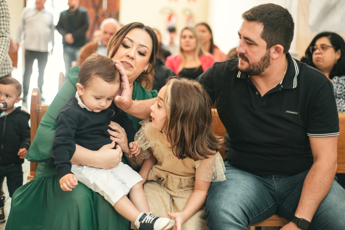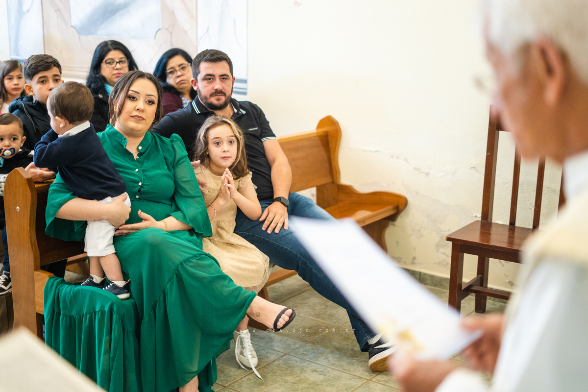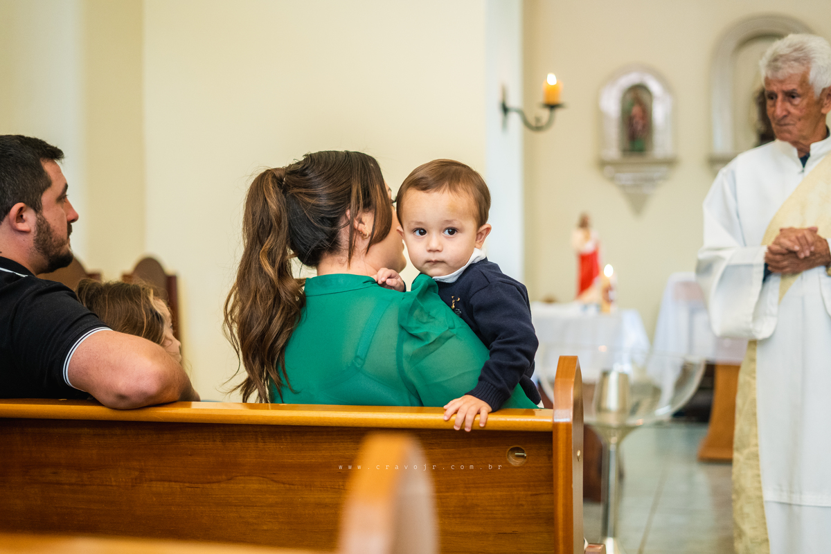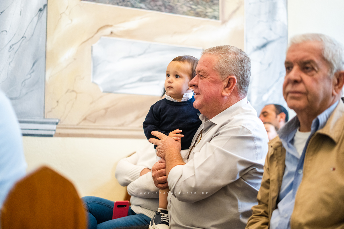 Isadora, filha mais velha de Gabi e Diego, auxiliou o diácono tal como uma excelente coroinha. Foi um momento familiar e comunitário que todos se lembrarão. Após o batizado, os convidados participaram da recepção na Chácara da Vovó Lurdes.