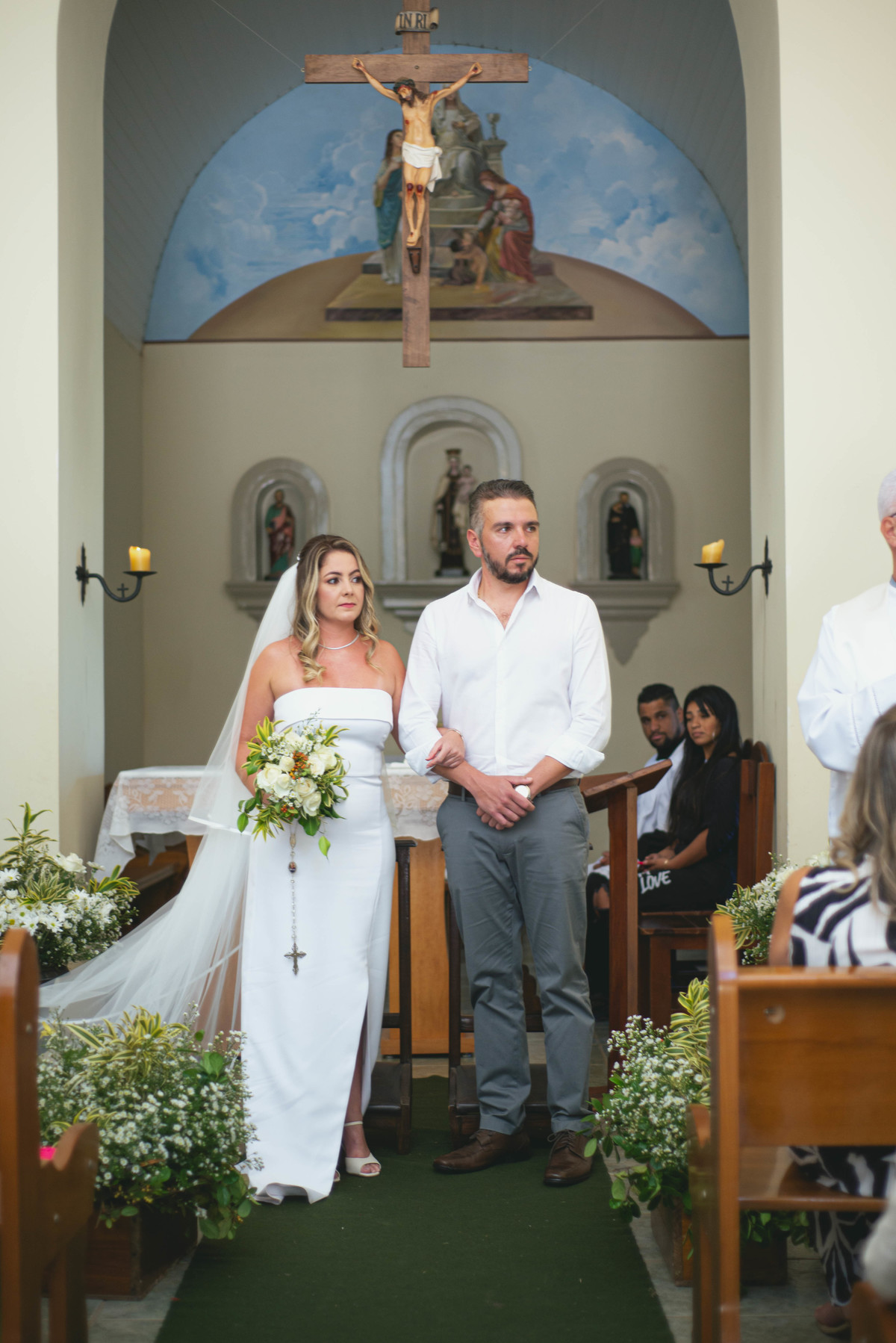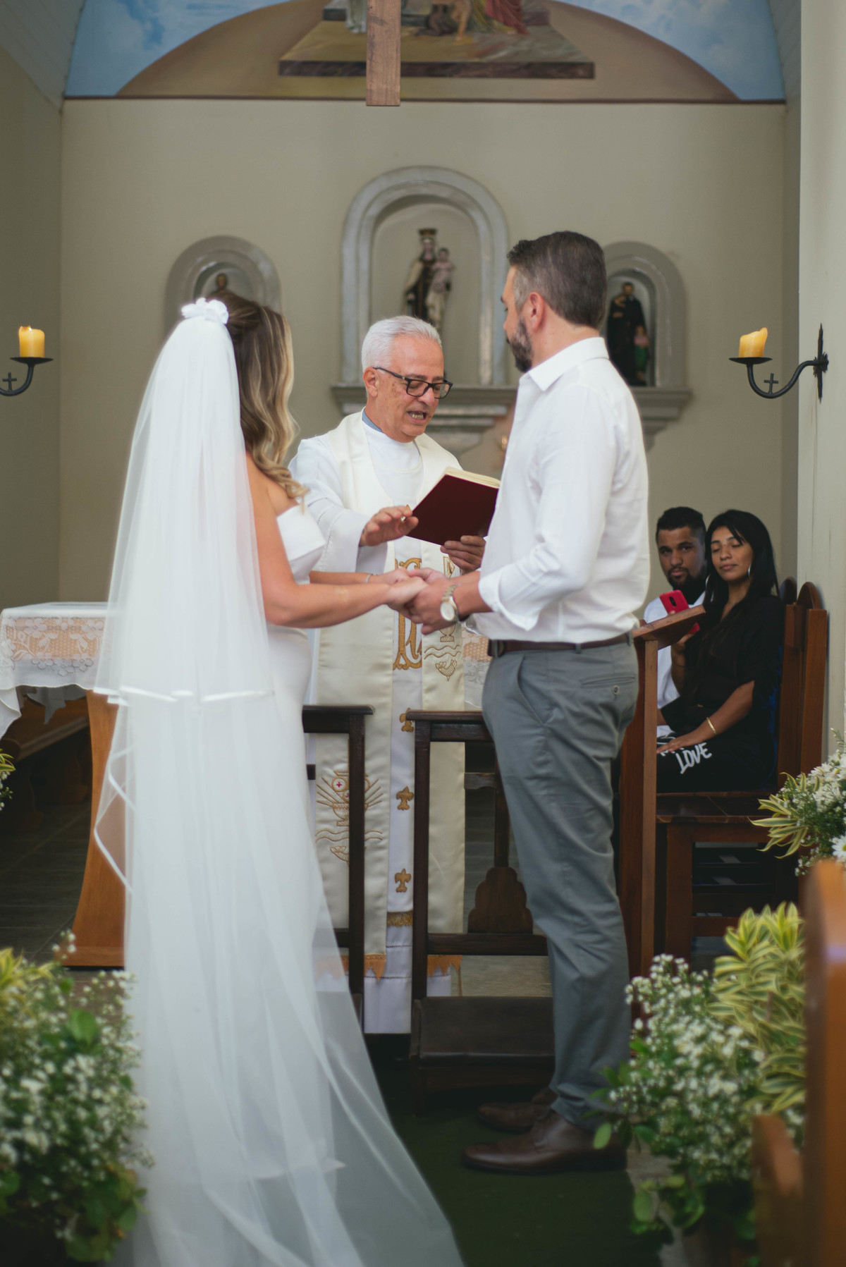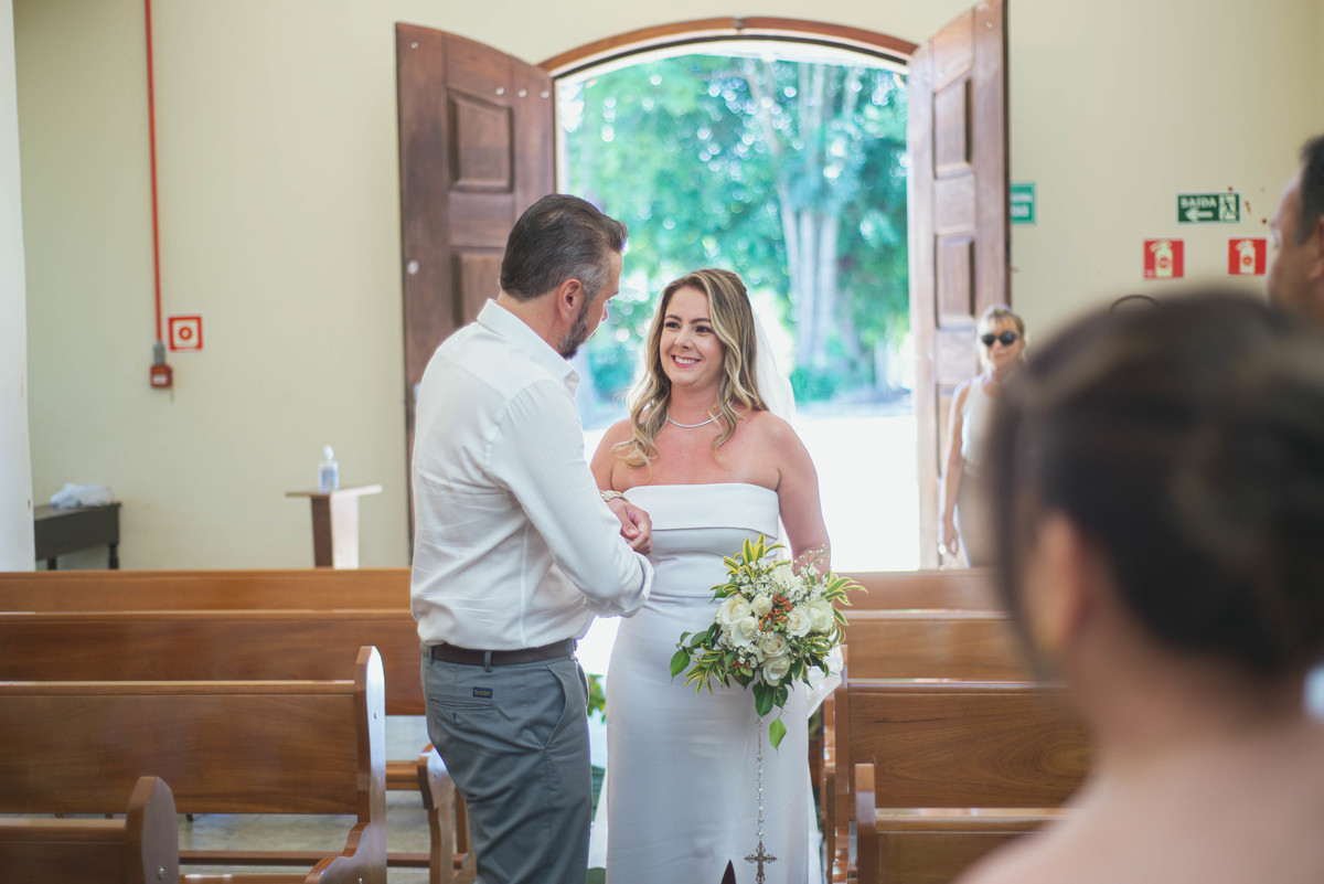 Quando os noivos se encontraram na capela do Lar Vicentino de Itapeva, seus olhares confirmaram que estavam no lugar certo, na hora certa, fazendo a coisa certa. Em uma cerimônia reservada, Bruna e Fabrício trocaram votos simples e verdadeiros, que ecoavam pela igreja, como uma melodia suave.